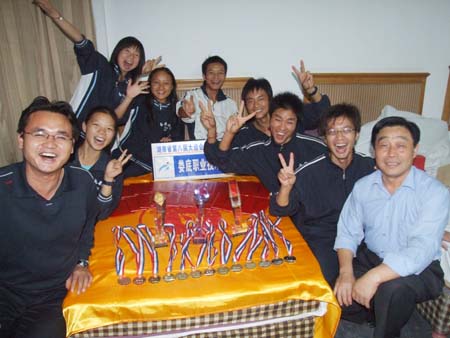 24日下午,院领导胡卫平、刘演林、彭建胜、朱建国接见了载誉而归的定向越野队教练和队员们,并与他们合影留念。院领导们大力称赞了定向越野队取得的不俗战绩,认为大家付出的辛劳和汗水获得了回报,要求各位队员将这种拼搏精神带到今后的学习生活中去,并希望学院的其他学子们以他们为榜样,自强不息,勇于拼搏,在人生道路上争取更大的成就。(刘艳)