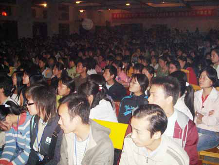 整个会场高潮迭起,掌声不断。 演讲持续了近两个小时,精彩的演讲深深感染了在场的各位观众,增强了他们的自信心,受到了师生的热烈欢迎。 (文/蒋海波 图/刘志军)