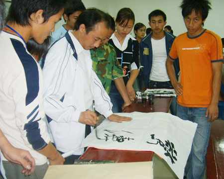 2006年11月1日,机电工程系举办了一场主题为“展现自我 发现自我”的书法大赛。举办此次书法大赛主要是为了增进大学生之间的文化交流,丰富校园文化生活。大赛共收到作品70多幅,形式多样,作品既富有时代气息,又不失传统风范。院书法协会指导老师罗华斌老师当场挥毫,创作了一幅作品送给机电工程系。(文、图 /青志东)