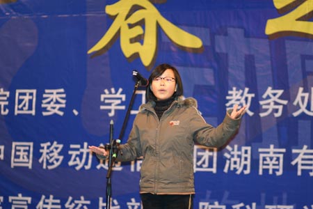 12月8日晚,第二届青年学习节系列活动之“我的大学生活”演讲比赛在学院礼堂隆重举行,来自全院各个系部的17名学生选手围绕此主题展开声情并茂的演讲。经过2个小时的激烈角逐,李香莉、张萍荣获一等奖,刘金艳等同学获得二等奖,张青燕等同学获得三等奖。本次活动由公共事务管理系承办,湘鹰演讲团协办。(实习记者 陈明娟 图/伍建湘)