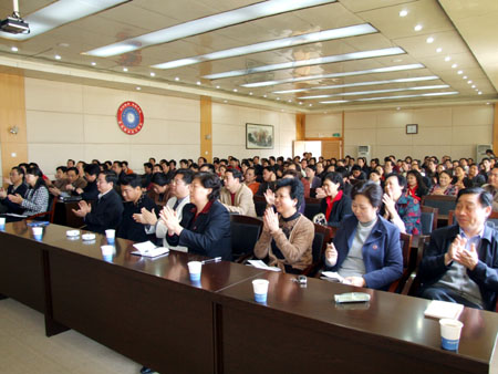 4月19日上午,省委组织部干部四处副处长冯宗君、省委教育工委组织部长刘昌辉在娄底市委副书记姚正先、副市长肖新桃以及市委组织部、市教育局有关领导的陪同下,来到我院,宣布省委对我院领导班子作出的重要调整决定。宣布大会在我院第一教学楼报告厅召开。全体院领导以及副高以上职称人员、副科以上干部参加了会议。会议由市委副书记姚正先主持。