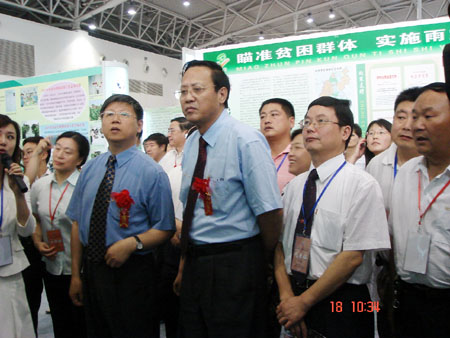 高鸿宾、范小建等领导参观我院展区(右二为彭建胜)