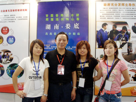 “雨露计划”是一项以政府主导、社会参与为特色,以提高素质、增强就业和创业能力为宗旨,以职业教育、创业培训和农业实用技术培训为手段,以促成转移就业、自主创业为途径的社会工程。其目的是帮助贫困地区青壮年农民解决在就业、创业中遇到的实际困难,促进贫困地区经济发展。我院自2005年被确定为湖南省贫困地区劳动力转移培训基地以来,始终坚持“瞄准贫困人口,实施订单培训,注重技能提高,确保稳定转移”的培训宗旨,竭诚帮助培训学员“掌握一门专业技术,谋就一份理想职业,插上一双致富翅膀”。三年来,共培训贫困地区学员4000多人,培训就业率达98%,稳定率达95%。因此被省市扶贫办推荐参加此次全国性的“雨露计划”成果展览。