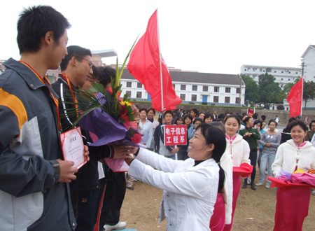 机电工程系、电子信息工程系、财经贸易系分别获得团体总分一、二、三名;电子信息工程系、公共事务管理系获得道德风尚奖,财经贸易系、建筑与艺术设计系、继续教育部、体育艺术系获得学生组比赛优秀组织奖;电子信息工程系分工会、后勤服务中心分工会、外语系分工会、体育艺术系分工会、教务、科研、继续教育、评估办分工会、财经贸易系分工会获得教师组比赛优秀组织奖;雷晚蓉、曾素纯被评为优秀领队;刘桂华、邹定华、罗忠锋、曾杰、吴雪辉被评为优秀裁判员。院领导为获奖系部和优秀个人颁发了荣誉证书和锦旗.(杨正强  刘艳)