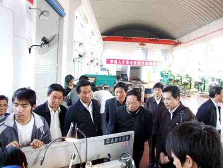 沈瑞庭参观了我院的校园建设和现代制造技术实训中心,对我院的办学思路、建设和发展情况进行了了解。当他了解到我院学生毕业后供不应求的情况时,显得非常高兴。沈瑞庭对我院近年来的蓬勃发展和取得的成绩给予了充分肯定,并希望我院要继续紧贴市场需要,突出职业特色,努力培养学生创新精神和实践能力,为发展地方经济培养更多的高级实用技能型人才。( 刘艳 张云峰)