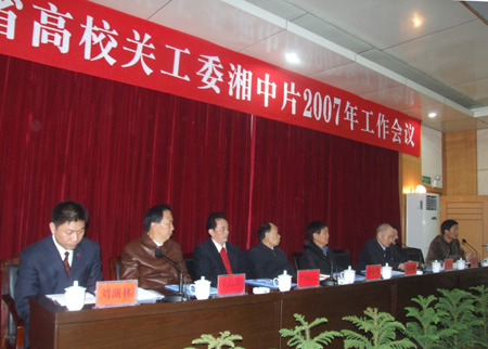 11月17日,湖南省高校关工委湘中片2007年工作会议在我院报告厅召开。会议就贯彻落实湘教通[2007]236号文件精神,发挥老同志余热,推动关心下一代工作的开展,进行了认真深入的交流研讨。娄底市委巡视员、原市委副书记赵协卿、省教育厅关工委主任余振均、副主任孔柳华、常务副秘书长黄朝强、娄底市关工委主任曾畅元、我院党委书记陈立楚、院长刘演林、党委委员、工会主席刘自斌、调研员、院关工委主任朱建国、我院有关部门的负责同志以及湖南工业大学、湘潭大学、湖南科技大学等湘中片区18家高校关工委的负责同志参加了会议。