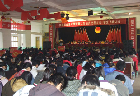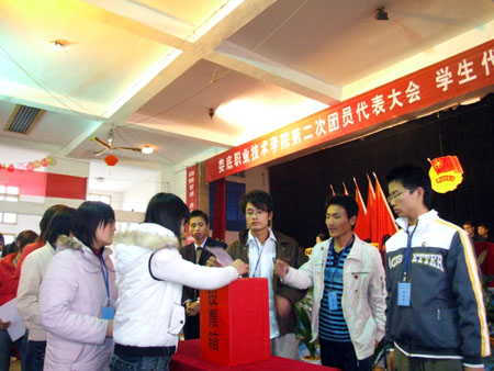 12月22日,娄底职业技术学院第二次团员代表大会、学生代表大会在学院礼堂隆重召开。大会选举产生了杨惠梅、欧芳等新一届团委会委员、柴斌、梁会杰等新一届学生委员会委员,审议通过了杨惠梅所作的《全面贯彻落实科学发展观,团结带领全院团员青年满怀信心地开创共青团工作局面》的工作报告、柴斌作的《充分发挥学生会的服务管理职能,努力开创学生会工作新局面》的工作报告、曾妮作的《娄底职业技术学院学生会章程修改(草案)报告》。