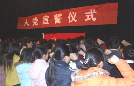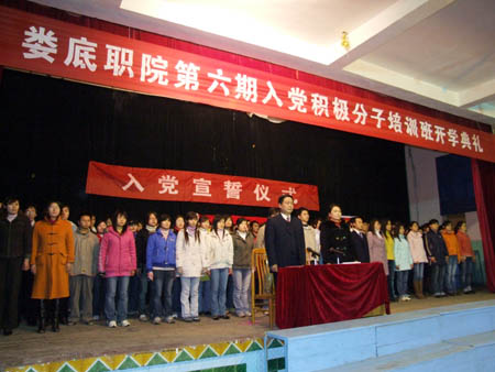 为加强党组织建设,规范党员发展工作,12月29日下午,我院在院礼堂举行第六期入党积极分子培训班开班暨预备党员宣誓仪式,来自我院各个系部的155名预备党员和1000余名入党积积分子参加了仪式。