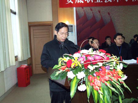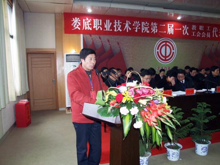 陈立楚致开幕词,他指出,第二届教代会、工代会的召开是我院政治生活的一件大事,也是全院上下在新的历史条件下统一思想、共谋发展的一次盛会。当前我院最主要的工作任务,是不断提升办学实力,确保顺利通过全省示范性高等职业院校及重点项目建设的评审。这一新的奋斗目标要求我们进一步增强大局意识、机遇意识、创新意识和发展意识,努力营造一种凝心聚力、奋发有为、和谐健康的发展环境,求真务实,开拓进取,使学院的各项工作更上新的台阶。因此,开好这次会议对于实现学院的宏伟目标,对于充分调动教职员工的创造激情和智慧,对于构建和谐娄职、特色娄职,具有极其重大的意义。