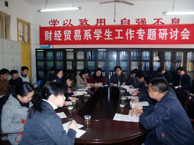 3月28日,财经贸易系在该系会议室举行学生工作专题研讨会,党委委员、工会主席刘自斌,学工处、院团委、财经贸易系领导、教师30多人共聚一堂,围绕如何搞好学生工作献计献策,研讨会现场气氛热烈,大家畅所欲言。会议由财贸系学工主任张一军主持。