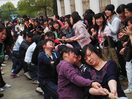 财经贸易系为期半个月的拔河比赛于4月2日在北苑科技楼前坪落下帷幕。