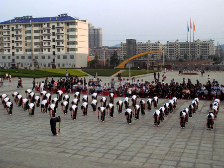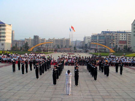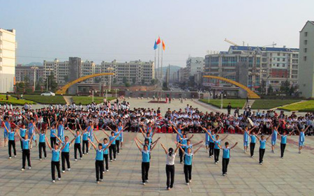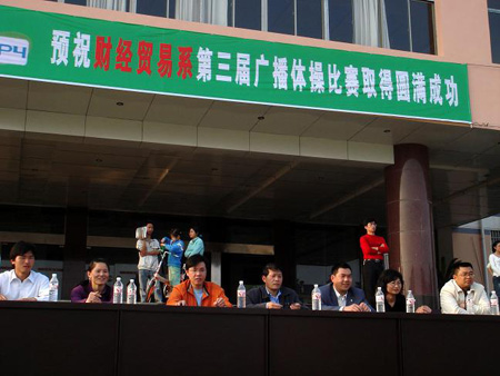 4月17日下午5:00-7:00,财经贸易系在文化广场举办了第三届广播体操比赛,体育艺术系主任付鹏、岳茂平老师和刘桂华老师担任比赛的评委,系主任周志和、系总支书记朱岳坤、学工主任张一军及各班班主任进行了现场指导。
