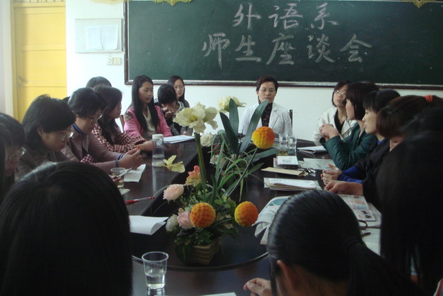 高职院校英语专业语法课程教学问题是近年来的一个热门话题。2008年4月23日下午四点半,外语系针对“语法课程改革”这一主题召开了一次师生座谈会。会议由外语系主任刘燕主持。参加此次座谈会的有肖付良、周萍、苏燕飞、邓海燕、王银燕、廖冰心、李健民、谢暮松、陈海燕等语法教学的任课老师及外语系各班的学生代表共30人。
