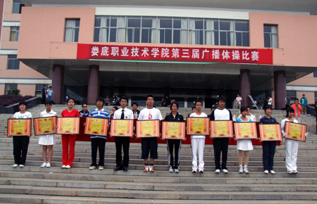 本次广播体操比赛得到了各系部的高度重视和积极配合,全院共有17支代表队,1000余名师生参加。比赛中,各参赛代表队伴着激扬的旋律和动感的节奏,口号嘹亮、步伐整齐,用标准整齐的动作和飒爽的英姿,尽情挥洒广播体操的青春活力,展示了昂扬向上的精神风貌,财经贸易系的“2008精彩奥运――情系娄职 共建三创”入场式、公共事务管理系的框架式入场、机电工程系的以奥运圣火传递为主题的入场式,将奥运精神和现代动感体操融合在一起,令人耳目一新,受到领导和观众的一致好评。
