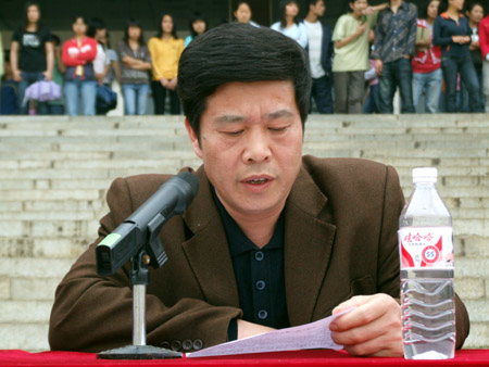 经过激烈角逐,财经贸易系07财大4班、公共事务管理系07旅游管理大一班获得第一名,比赛结束后与会领导为获奖班级颁奖。