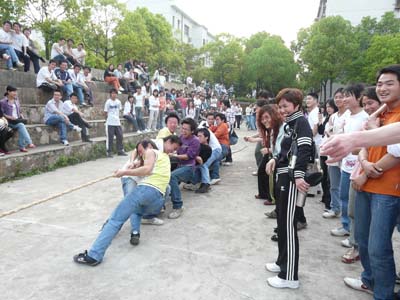 为了迎接2008年北京奥运,加强同学们的体育锻炼,建筑与艺术设计系于4月17日-4月28日举行了第二届拔河比赛。