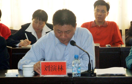 刘演林在仪式上汇报基地建设情况
