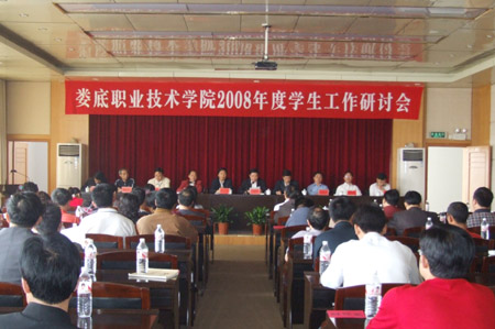 为提高我院学生工作水平,研讨学生工作新思路,部署下半年学生工作要点, 5月10日,我院在主教学楼报告厅召开 2008年度学生工作研讨会。院领导陈立楚、彭建胜、周意坚、刘自斌、朱建国、欧阳雄、李天仁、周仲如、邹松建、曾国基出席会议,系部总支书记、主任及学工主任、辅导员和相关职能处室的负责人参加了会议。