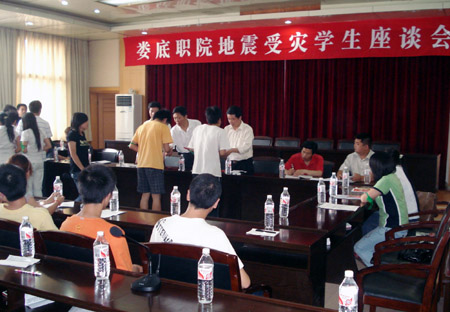 5月22日,我院在报告厅召开地震灾区学生座谈会,院党委书记陈立楚、院党委副书记彭建胜、党委委员、工会主席刘自斌,宣传统战部、院团委、学工处负责人以及各系部学工主任参加了座谈会。会议由刘自斌主持。