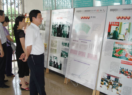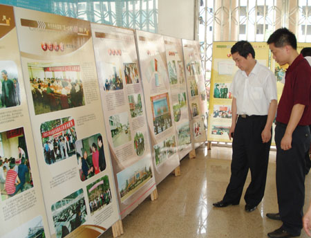 5月27日在我院实训楼前展出了由中共娄底市委统战部举办的《纪念中共中央"五一口号"发布60周年图片展》 。院领导、院宣传统战部、组织人事处等部门的相关负责人和部分老师参观了展览。
