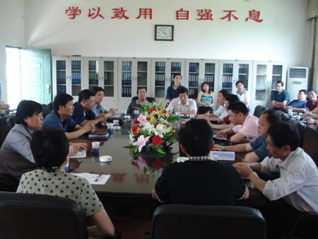 刘演林首先通报了我院项目申报文件审阅阶段工作情况。我院申报了4个大项、9个小项的湖南省职业教育“十一五”重点建设项目,申报的省级示范院校项目文件审阅获通过,申报的两个重点建设专业(机电一体化技术、煤矿开采技术)文件审阅均获通过,申报的两个重点建设课程(电气控制与PLC、机械设计基础)文件审阅均获通过,专业带头人我院申报四人,文件审阅通过胡治民、陈育新、祖国建三人。有这么高的通过率,是很不容易的,这与前阶段全院教职工的努力是分不开的。