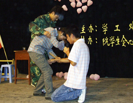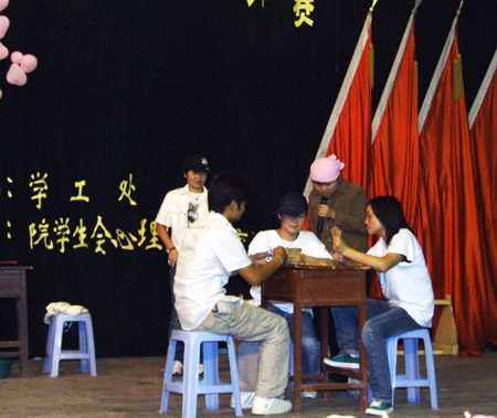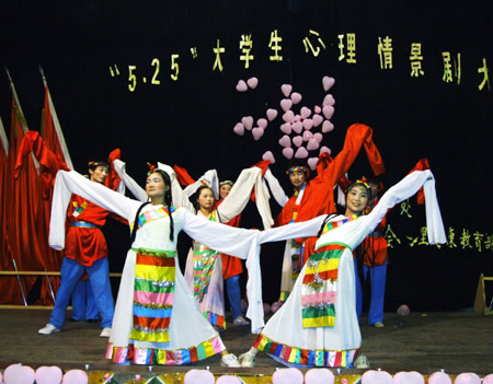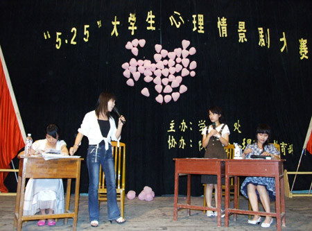 “5*25”即“我爱我”,我院自5月以来就积极开展心理健康教育活动,发出了《身心健康,和谐人生》的倡议书,组织同学观看了《七宗罪》等心理健康教育影片,制作了心理健康教育宣传展板、组织各系部学生编排心理健康教育情景剧,校园内形成了一个积极的心理健康教育氛围。(文/ 杨正强 钟琼 龙建清 江庆林 图/曾春桃 杨正强)