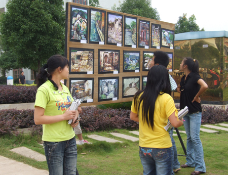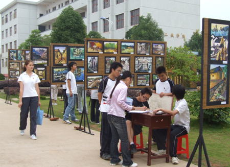 6月12日,我院建筑与艺术设计系在学生生活区主办以“湘西情”为主题的艺术作品展。近100幅洋溢着浓郁生活气息的艺术作品吸引了每一位过往的师生驻足观看。