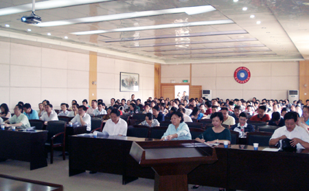 7月1日,在中国共产党成立87周年的日子,我院在报告厅举办2008年度干部培训班,全体院领导、副科以上干部、副高以上职称人员共200多人参加。院长刘演林、党委书记陈立楚分别作重要报告。培训班由党副委书记彭建胜主持。
