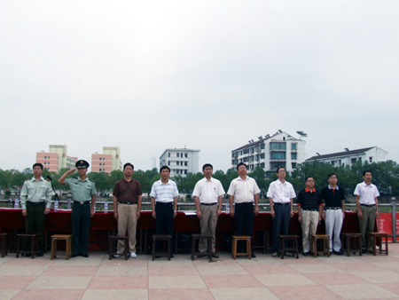 院党委书记陈立楚检阅学生军训队伍