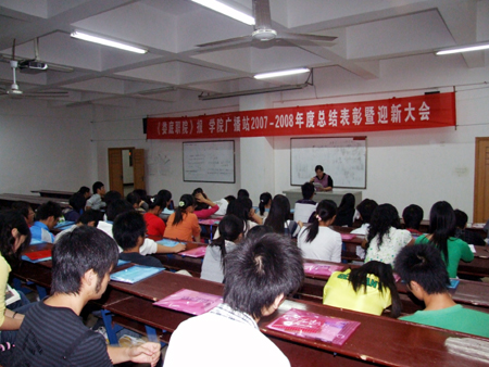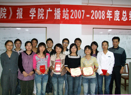 10月17日,《娄底职院》报、学院广播站2007―2008年度总结表彰大会暨迎新大会在主教学楼110举行。湖南省作家协会会员、学院党委宣传统战部部长王宗凡副教授、院报编辑刘艳老师、学院网络管理中心欧阳琦老师出席会议并为获奖学生记者颁奖,《娄底职院》报、学院广播站全体成员参加了会议。大会由学院广播站站长刘艺梁主持。