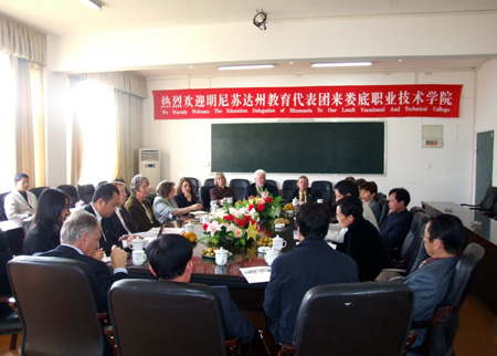 11月13日,以明尼苏达州社区与技术学院佛格斯福尔斯分院院长Anna Wasescha(安娜―唯茜卡)为团长的美国明尼苏达州佛格斯福尔斯市教育代表团一行来我院进行友好访问。娄底市政府副秘书长梁克和、我院党委副书记欧友佳、副院长龙伟、党委委员、工会主席刘自斌接待了来访外宾并共同出席了在实训楼会议室召开的合作洽谈会。