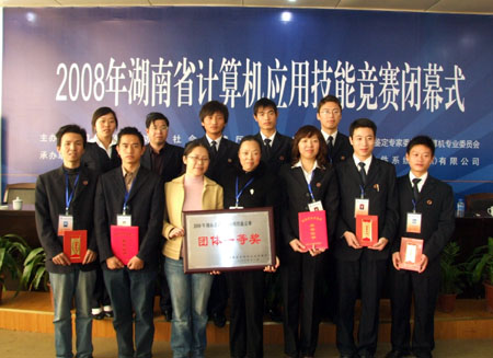 11月28日至30日,2008年湖南省计算机应用技能竞赛在我院举行。来自全省41所大中专院校代表队的217名选手参加了此次竞赛。我院由电子信息工程系9名老师和9名学生组成代表队参赛。经过激烈争夺,我院代表队共有9位师生获得个人比赛前四名,其余选手均获得优秀选手称号,一举夺得全省团体总分第一名的好成绩。