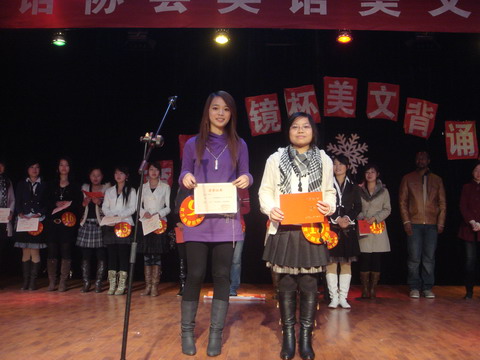 经过激烈角逐,08旅英大一班的潘陈桢获得一等奖,07商英大二班的呙艳萍和08商英大一班的雷春霞获得二等奖,07商英大二班的赵娜、黄植婷和07旅英大一班的何成获得三等奖。