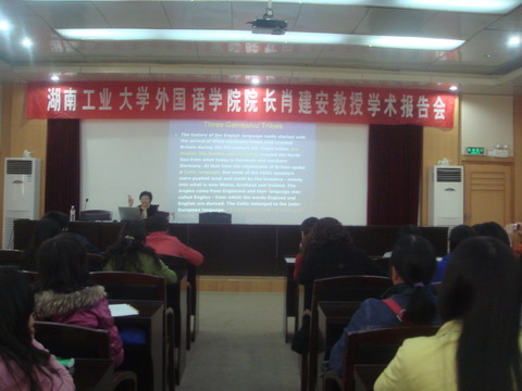 12月19日下午,湖南工业大学外国语学院院长肖建安教授应邀在我院多功能报告厅作了题为《英语的变迁与变异》的学术讲座。外语系全体教师和学生代表参加了讲座。