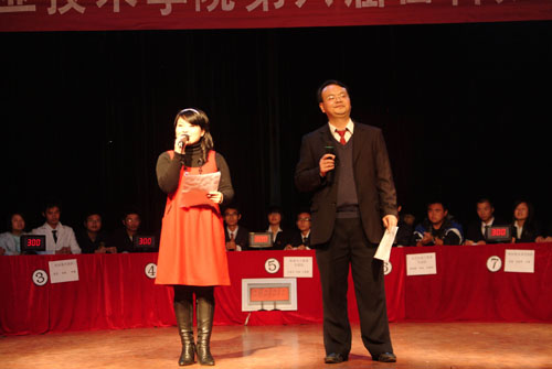 为了丰富校园文化,扩大学生的知识面,展示我院学生的风采,由思政课部、院团委、教务处联合举办的第六届百科知识竞赛于12月18日晚在我院隆重举行。院领导刘自斌、曾国基出席,部分处室系部领导及我院师生500多人参加了此次活动。此次竞赛分为必答题、抢答题、每组必答题和风险题四个环节,机电工程系、电信系、财经贸易系、公共事务管理系、外语系、建筑与艺术设计系、农林系、资源工程系、继续教育部分别组队参赛。各代表队以饱满的热情,自信的形象充分展现了当代大学生的风采。大赛现场气氛活跃,选手、主持人和现场观众互动高潮迭起。