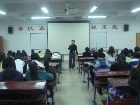 4月1日晚7:00,外语系刘燕主任在主教学楼310#教室为系学生会全体干部和各班班干部及口语协会理事会成员作了一场“如何当一名好干部”的讲座,外语系学工主任贺建良、学生干事陈秀丽以及07、08级辅导员和全体学生干部共计150多人参加了此次讲座。