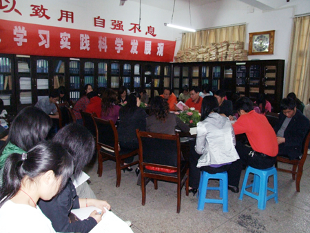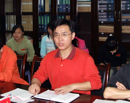 4月14日,财经贸易系全体师生党员在系会议室召开深入学习实践科学发展观动员大会,财贸系党总支书记朱岳坤主持会议。