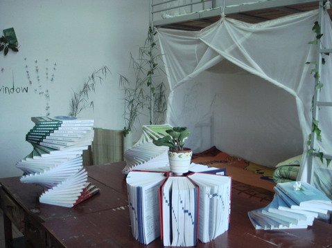 外语系寝室集中于大学生公寓楼一栋。为参加比赛,各寝室的同学自主设计,充分发挥想象力和创造力,将墙壁、门、窗、天花板精心装饰了一番。寝室内的饰品以手工为主,整体风格别致。110室的“绿光森林”、213室极具书香韵味的雅舍吸引了不少同学参观。