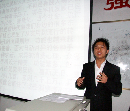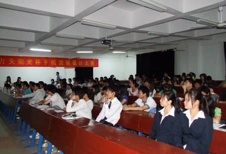 为了丰富校园文化生活,提高学生营销策划能力,6月3日晚,由院团委主办、市场营销协会承办的“力天阳光杯”手机营销设计大赛在学院主教学楼110室隆重举行,力天阳光科技有限公司总经理高志、财经贸易系申再林老师、刘卫国老师出席并担任比赛评委。我院70多名学生现场观看了比赛。