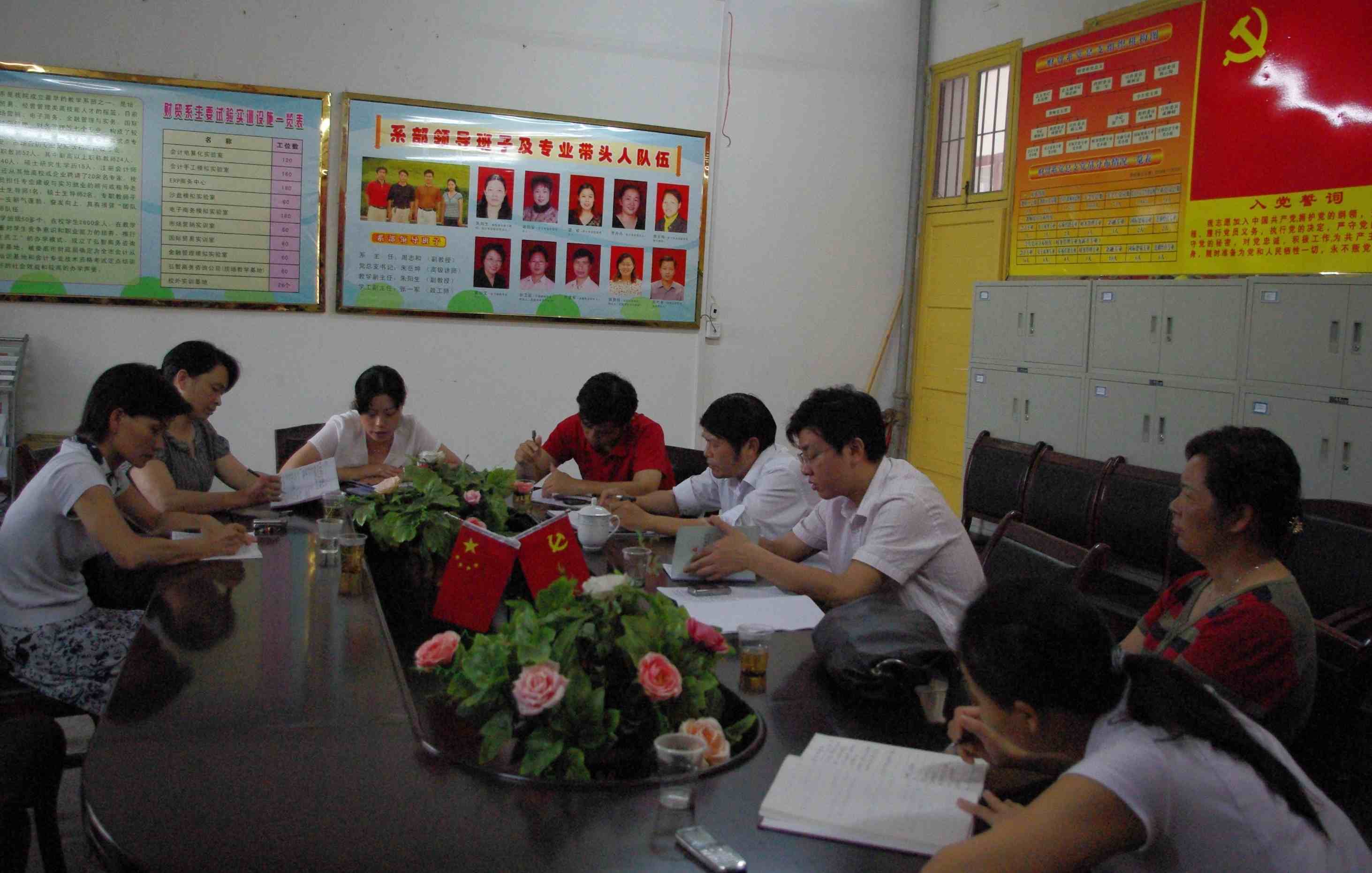 6月10日下午,财贸系党总支在系会议室召开班子成员专题民主生活会,会议主题是:“深入学习实践科学发展观,促进财贸系又好又快发展”。系党总支支委会全体成员出席,九三社员、系副主任朱阳生列席会议,学院组织人事处李新红处长、院纪委委员、审计处陈晶玉处长到会指导。会议由总支书记朱岳坤同志主持。
