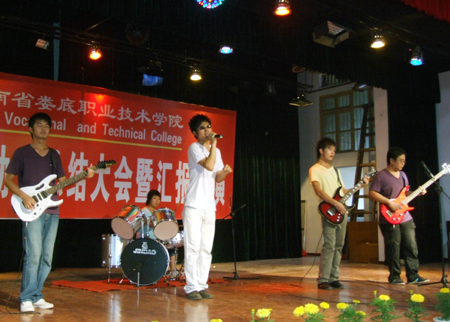 一开场,乐器协会就为大家带来了不小的震撼。钢琴、贝司、架子鼓、电子琴完美地融合在一起,演奏出了动感与激情。副院长刘自斌在大会上发表讲话。他强调社团活动是同学们提高自身综合素质的重要平台,积极参加社团活动有利于大家各方面能力的培养和锻炼。随后,各社团带来的节目形式多样、精彩纷呈。有动感激情的街舞表演《舞动的精灵》、有活力四射、青春飞扬的健美操《活动青春》、还有展现女性端庄、高雅的礼仪展示,而武术协会与书法协会分别带来的武术《搏》、现场书法表演更是让大家领略到了中国武术和书法的博大精深。