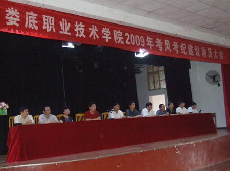 院长杜祥培发表讲话,强调了为什么要抓考风考纪和如何抓的问题。杜祥培认为,抓好考风考纪,一是为了学院的未来。现在娄底职院既面临良好的发展机遇,同时也面临严峻的挑战。要建成一所高水平的高职院校,教学质量是关键,而考核教学质量水平的关键在于考风如何。二是为了教师自己的发展。考风不好则学风不好,如果考试时可靠舞弊轻松过关,那么许多学生平时学习积极性必然不高,导致不爱学习,上课不听讲,这将严重影响到师道尊严。三是为了学生。学生来到学校是为了学知识,掌握技能,好的考风可推动学生认真学习,真的学到知识,学到本领。关于如何抓考风考纪,杜祥培提出三点意见。一是老师要带头。命题、制卷、监考、改卷各个环节都要严格把关,督查要到位。二是全校齐动员,共同抓好考风建设。考风建设不单是教务、学工的工作,也是每个教职工的职责。我们应该共同行动,齐心协力,改变不良考风,改变娄底职院的形象。三是真正形成诚信考试、杜绝舞弊的校园文化。要将考风建设当成一项长期的工作来抓,从文化氛围层面来引导娄底职院形成积极向上的考风文化。