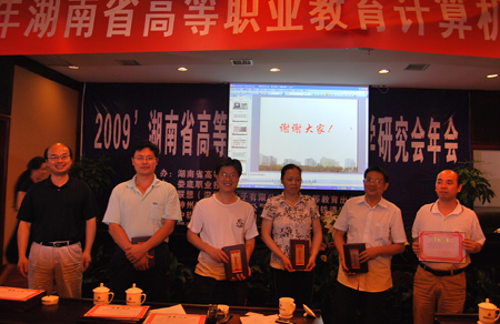 在会议闭幕式上,湖南省高职计算机专业教学研究会副会长胡远萍宣读了学会论文获奖名单,对优秀论文获得者进行了表彰,其中我院电子信息工程系易瑜老师论文《创新教学模式――在‘Web网站设计与制作’课中引入项目教学法的实践与研究》获一等奖,易瑜、吴莲贵老师论文《基于Ajax技术的新生报到系统的设计与实现》、《基于工作过程的‘C#程序设计’课程设计》获二等奖。