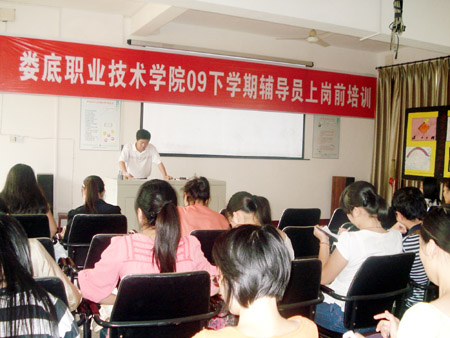 9月15日下午,由学工处组织的我院09年下学期学生辅导员岗前培训在科技楼团体辅导室开幕。副院长刘自斌主持并作指导讲话,全院36名辅导员参加了此次培训。会上,刘自斌作了辅导讲话,他精辟地概括了此次培训内容的要点:一、辅导员队伍建设得到了高度重视,辅导员工作取得明显成效;二、明确辅导员素质要求,努力提高自身工作能力;三、规范辅导员队伍管理,提高辅导员工作效率。刘自斌在讲话中对各系的优秀辅导员提出了表扬,要求所有辅导员向先进典型看齐,以身作则,言传身教,做一个合格的辅导员。同时,刘自斌也希望今年刚从高等院校毕业的年轻辅导员们能给我院的辅导员班子注入一股新的活力,并鼓励他们向老辅导员们学习,创新务实,做学生的政治向导,思想益友。 本次培训为时一周,还将有其他院领导和学工领导为辅导员们做讲座。(江慧静 刘艳)