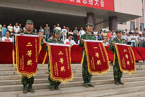 之后,党委副书记欧友佳宣读了军训队列会操优秀班级和内务评比优秀寝室名单。在队列会操中获得先进集体一等奖的是机电一体化技术一班,工大一班、软件技术班、商务英语二班分列二等奖,三等奖则由电气自动化技术一班、市场营销一班、旅游管理一班及工程造价一班并列取得。此外,共有北院一栋415,二栋311、308、414、417等34间寝室获得“内务评比优秀寝室”称号。