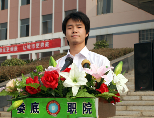 最后,杜祥培以“忘记过去,重塑自我”勉励全体新生,过去的生活、学习都成为了过去,从踏进娄职的第一步起,每位学生都是一个崭新的自我,因此,他要求新生们迅速调整心态、做好准备,从同一个起跑线上向终点冲刺。