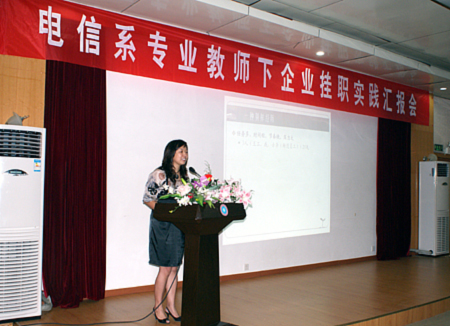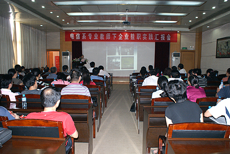 据悉,此次电信系专业教师下企业挂职举行实践汇报会在我院尚属首次。汇报会上,今年以来在企业挂职实践的九位教师中,有六位亲临现场汇报了实践成果,并就挂职期间遇到的问题、总结的经验,及在以后教学中应注意的问题,与各位领导、同仁进行了分享。