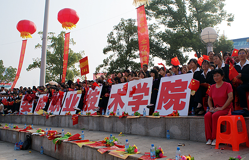 赛后,不少学生争相在活动现场合影留念,他们纷纷表示,非常荣幸能参加“万人红歌”活动,能在祖国60华诞之际献上自己的绵薄之力,是他们一生的光荣。此次带队老师来自体艺系的杨翰儒也表示,“万人红歌”是把我院爱国主义教育活动推向深入的一次激励和动员,也是为共和国60华诞献上的一份真情祝福。(李莉)
