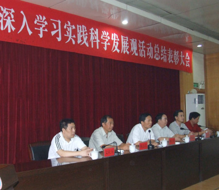 院长杜祥培发表讲话,指出科学发展观活动的开展,给学院提供了一个好的平台和机会,学院各方面事业取得了较大的发展。我们要以此为契机,将取得的成果转化为下一步发展的坚实基础和强大动力,以全新的姿态迎接祖国六十周年华诞。(欧阳琦)