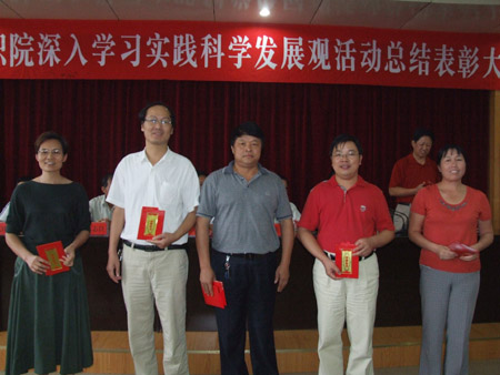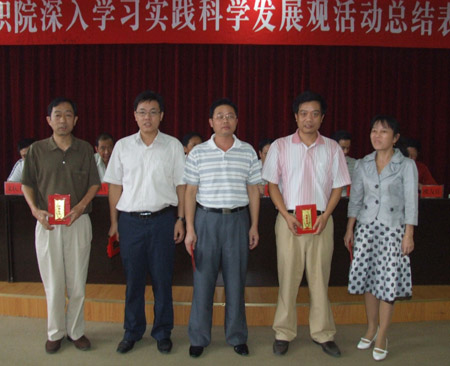 党委书记陈立楚发表讲话,对我院深入学习实践科学发展观活动进行了总结。陈立楚指出,我院的学习实践活动呈现出六大特点,即:思想统一认识高、组织领导力度大、规定动作不走样、自选动作形式多、督查指导力度大、边学边改效果好。活动取得了较大成效,经过半年来的集中学习、实践,党员干部们加深了对科学发展观理论的全面把握和了解,增强了贯彻落实科学发展观的自觉性,有效解决了影响和制约学院发展的突出问题,理清了学院的发展思路,夯实了下一步持续快速发展的基础。学习实践科学发展观活动是一项长期的工作,今后我们要不断巩固学习实践活动的成果,主要从以下四个方面着手:一是按照科学发展观要求,调整思路,抓好发展;二是按照整改方案的要求,抓好突出问题的解决;三是按长远、实用要求,抓好长效机制建设;四是按十七届四中全会要求,加强党员干部队伍建设。